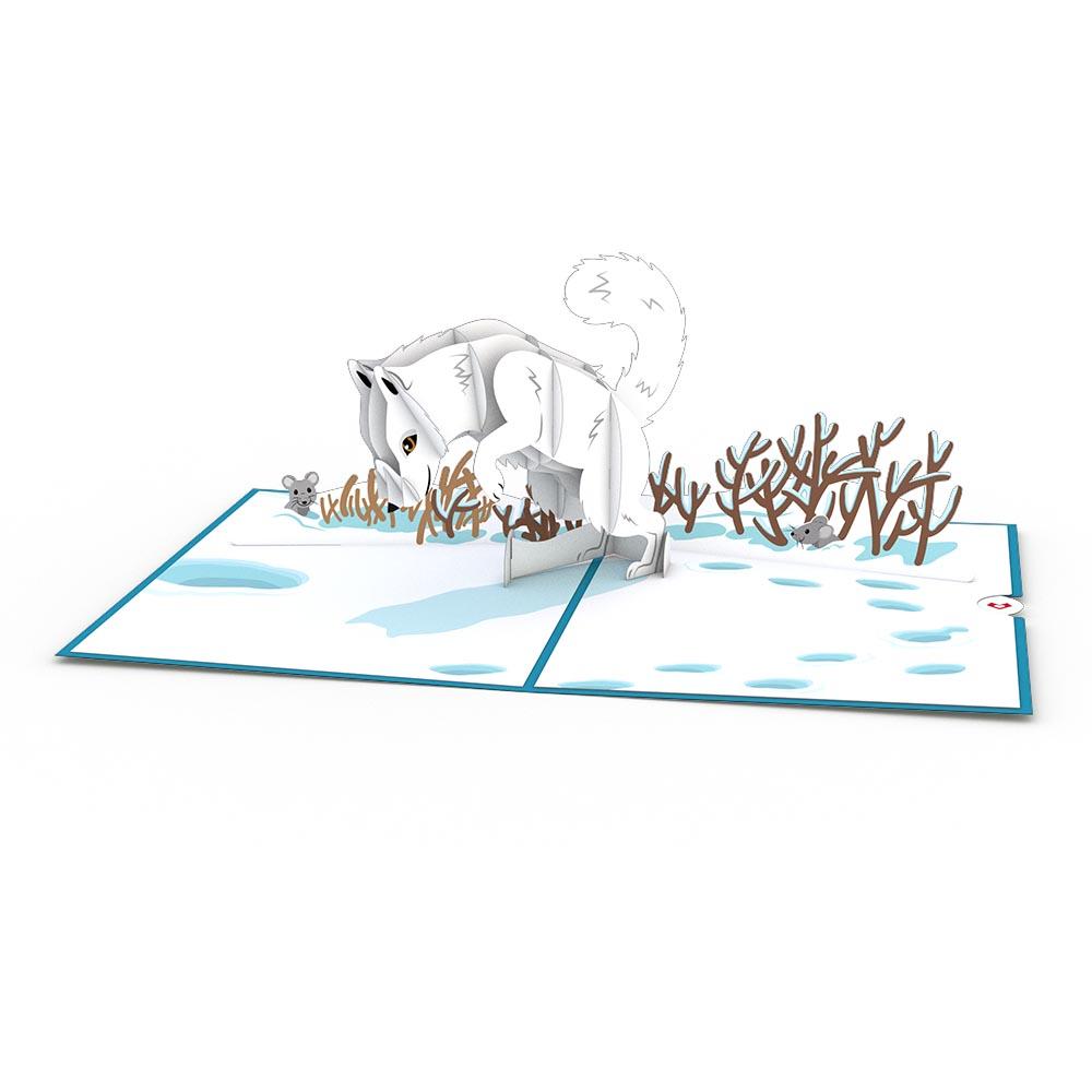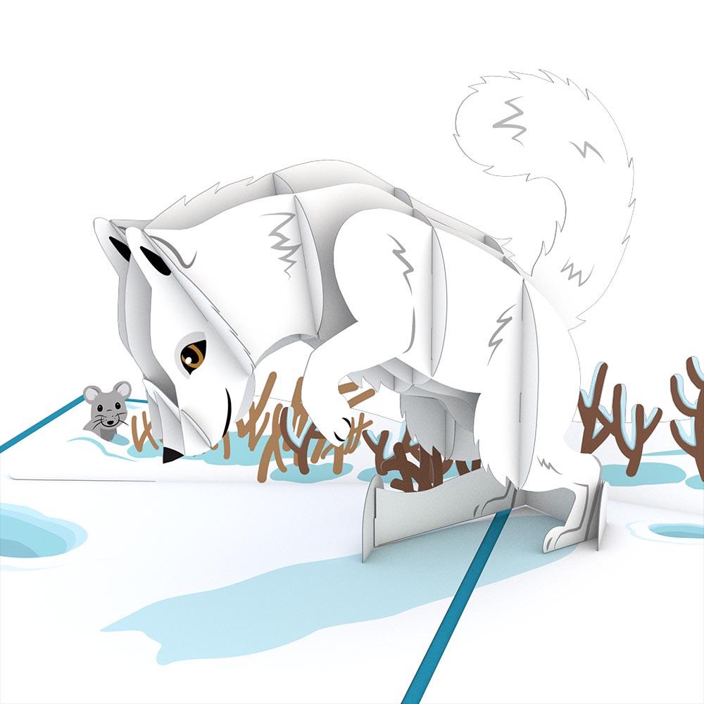 The Arctic Fox pop up card is 5 inches wide by 7 inches tall.