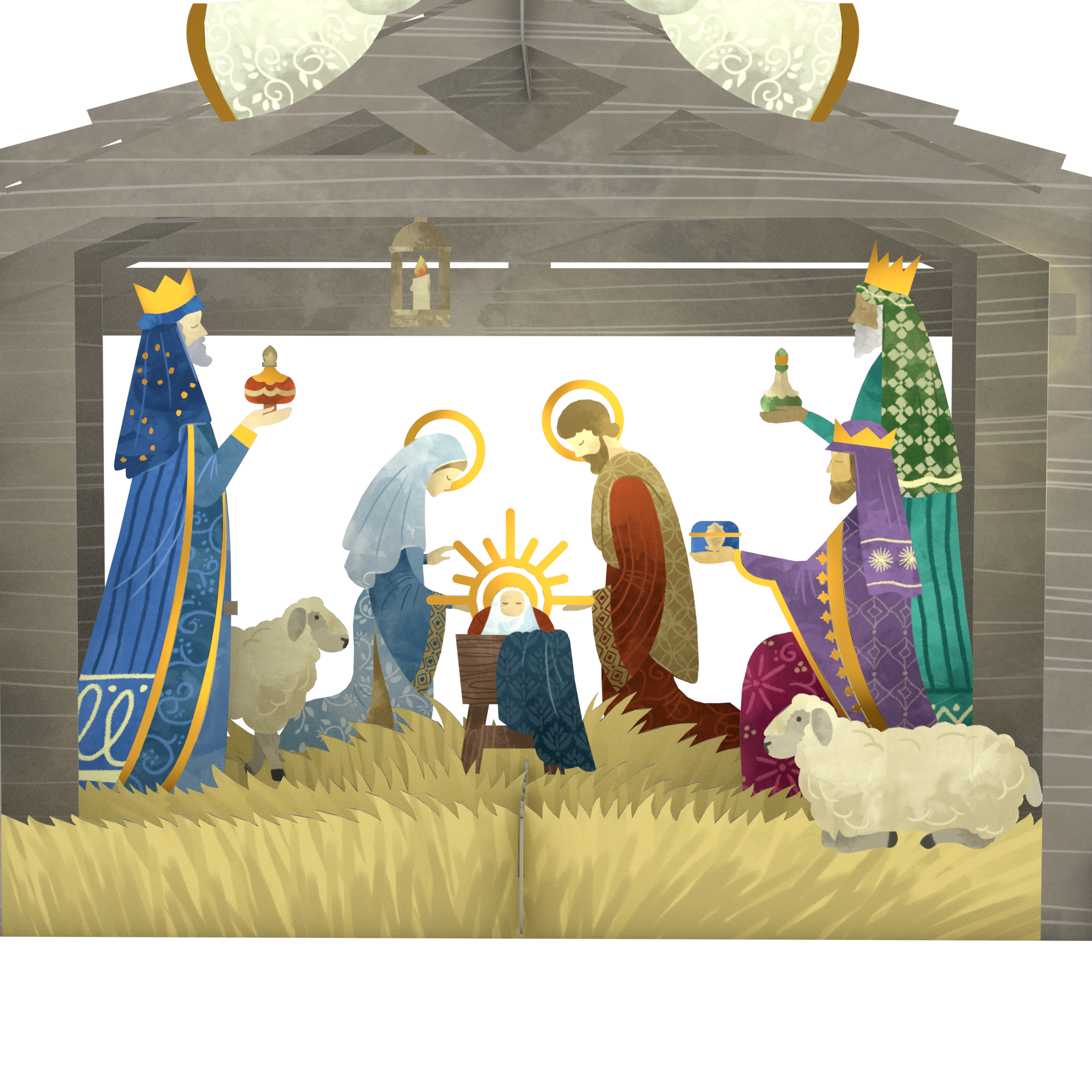 One Decorative Nativity Scene pop-up display. (Note: this does not include an envelope.)