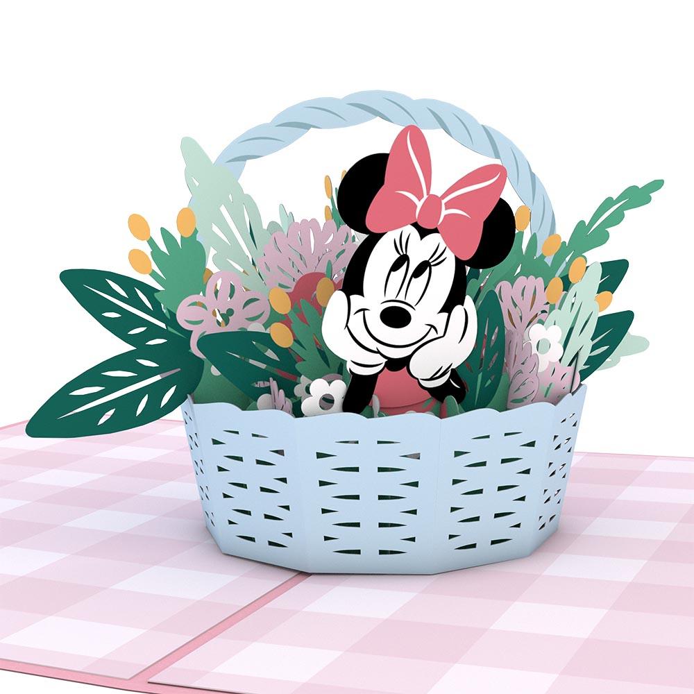 The Minnie Mouse Flower Basket pop-up card is 5 inches wide by 7 inches tall.