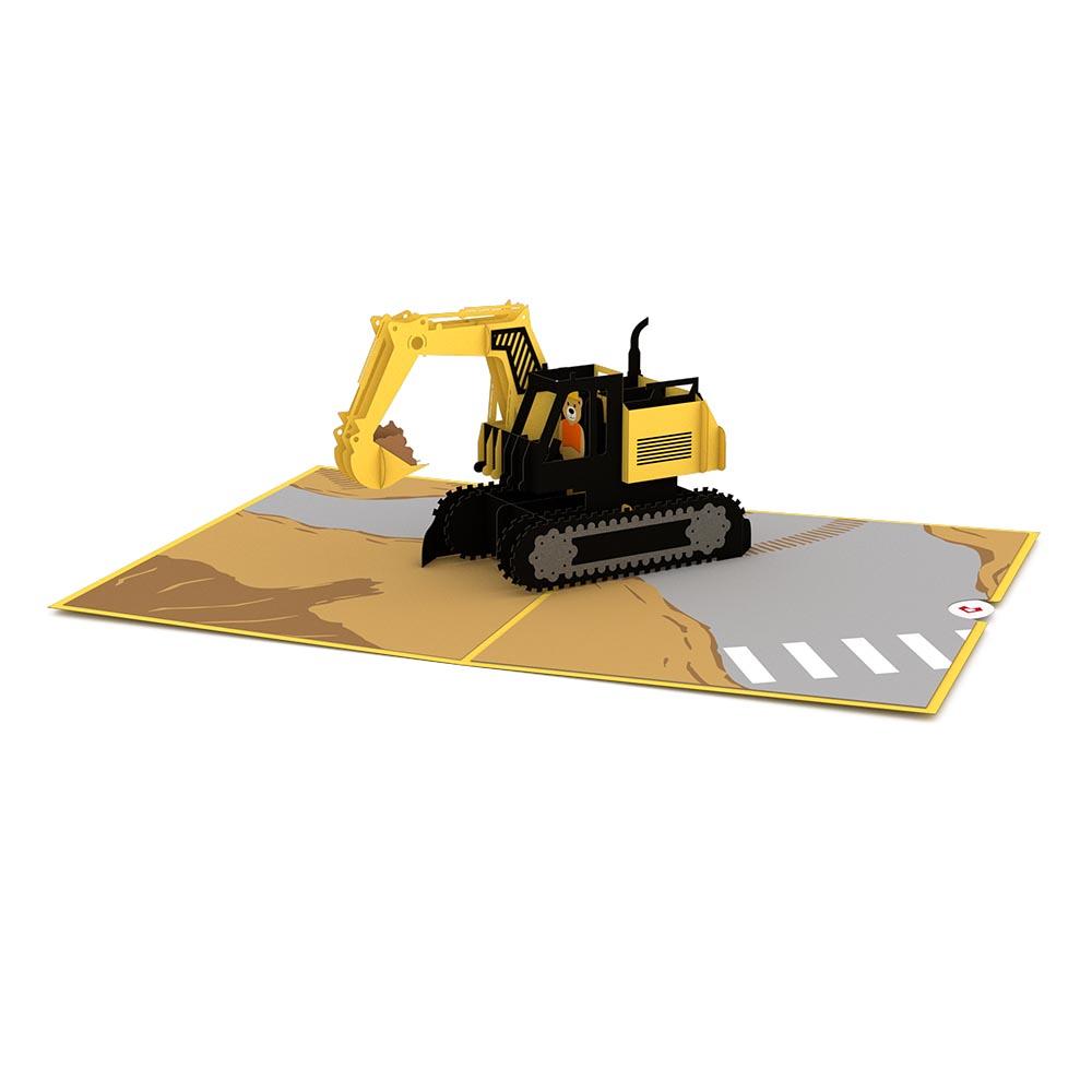 Commemorate the groundbreaking of a new construction project or celebrate the building of a new house with our pop up Excavator. Also, makes a great birthday card for kids or people who love heavy machinery. And really who hasn't lost themselves watching an excavator do its thing?