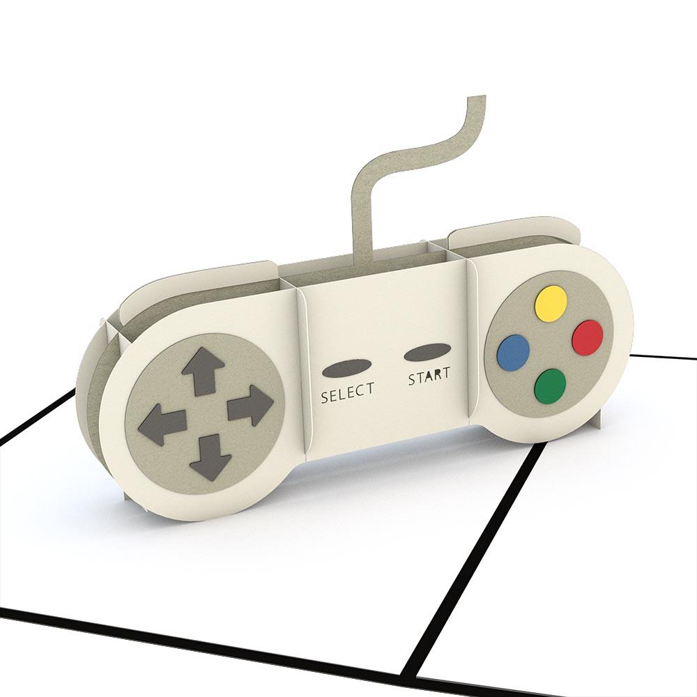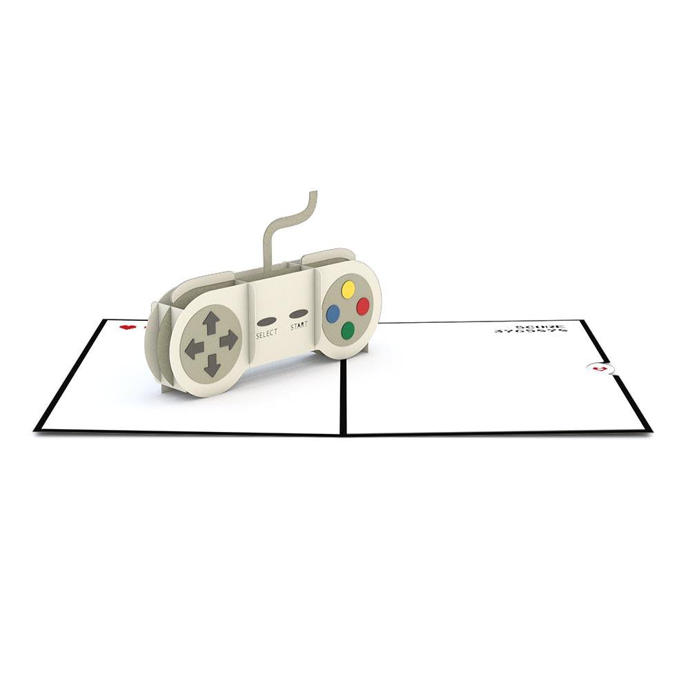 This design is for the gamers. The black cover of the Game Controller card features a 16-bit message that says "Press Start" and hints at the paper sculpture inside.