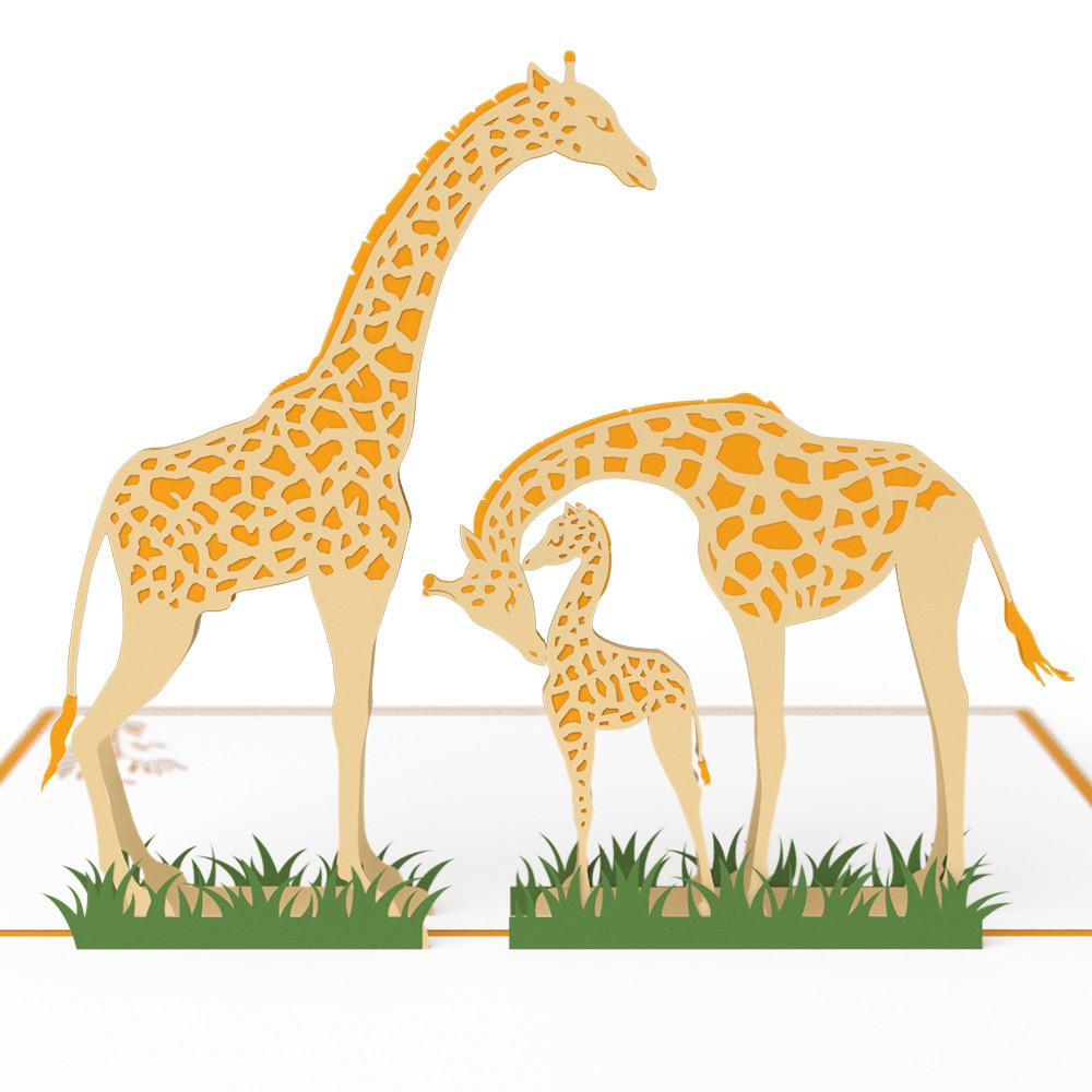 This beautiful giraffe family pop-up card is 5 inches wide by 7 inches tall.