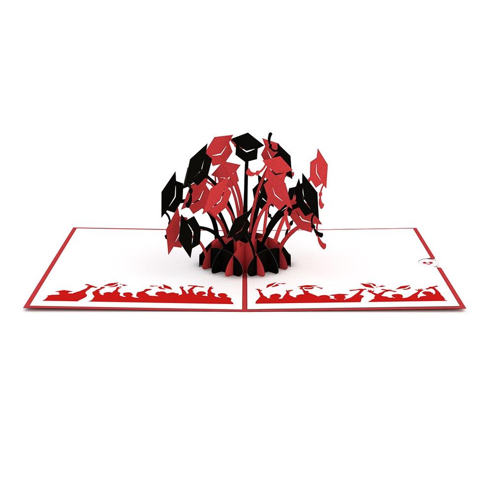 The front of the Graduation Hats card features a vibrant red cover with an illustration of a grad cap and diploma.