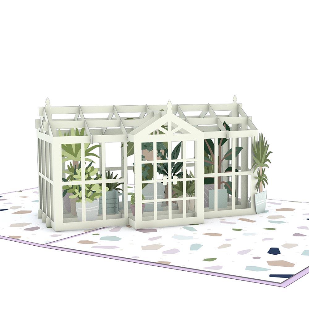 The Greenhouse Garden pop-up card is 5 inches wide by 7 inches tall.