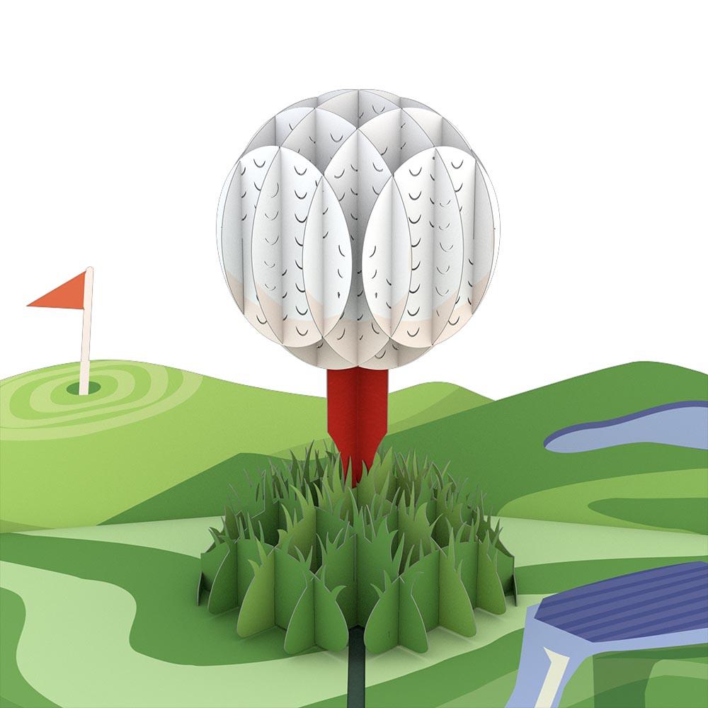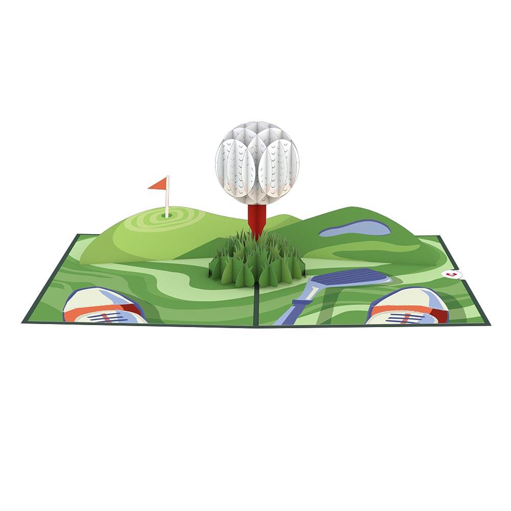 The Hole in One pop-up card is 5 inches wide by 7 inches tall.