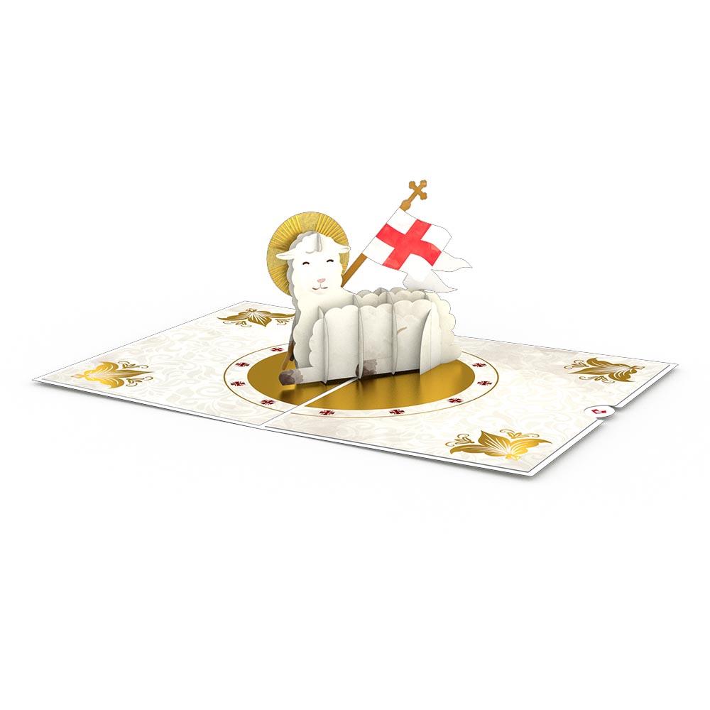 The Holy Lamb pop-up card is 5 inches wide by 7 inches tall.