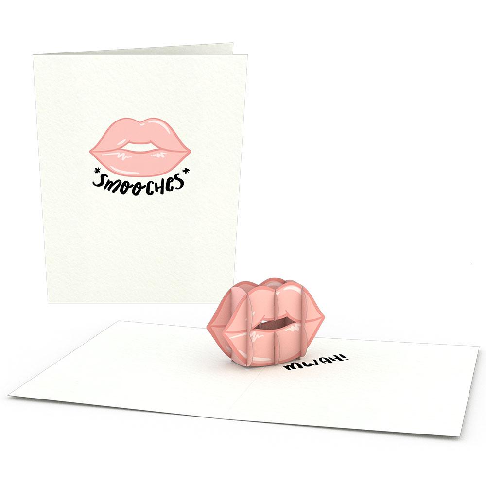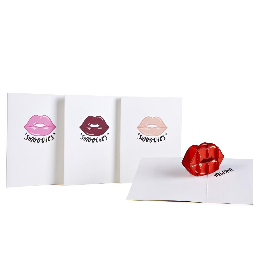 In this 4-pack of pocket-sized notecards, a smooch print appears on the cover and inside sculpture in different lipstick shades (red, pink, nude, burgundy). With "smooches" printed on the cover and "mwah" on the inner panels, this pack of notecards is perfect to show all the loves in your life just how much you care.