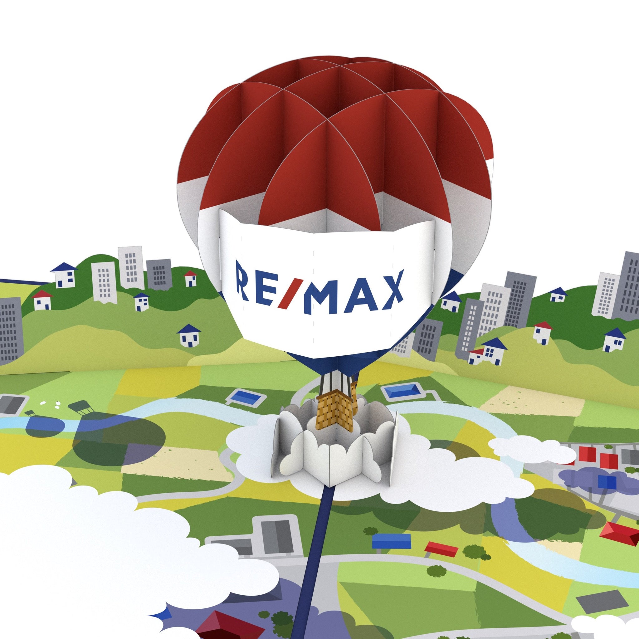 Lovepop is proud to be an official approved supplier of RE/MAX cards. We want to celebrate your accomplishment of buying a house! What a better way to get an aerial view of your new city than from the RE/MAX balloon?
