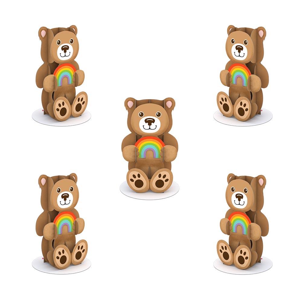 Five Rainbow Bear Stickerpops and five paper bases for display.